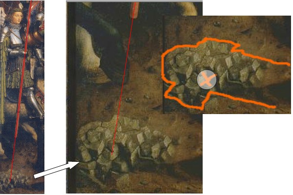 Hans peper... wer sagt dir, dass das Rätsel von RlC nicht geknackt wurde? Noch kurz zum Bild "Die gerechten Richter" und warum es ausgewechselt wurde. Du zeigst ja auf, welche kleinen Veränderungen vorgenommen wurden. So wurde für eine Ordenskette von einen Führer (wie bei einem Bürgermeisteramt z.B.) ein Kragen eingesetzt. Ein verdeckter Mund (Schweigepflicht) ist nun sichtbar. Einer Kette fehlt der letzte Ring. Was sich als Konsequenz für den eingeweihten Betracher daraus ergibt, ist doch wohl ganz eindeutig.