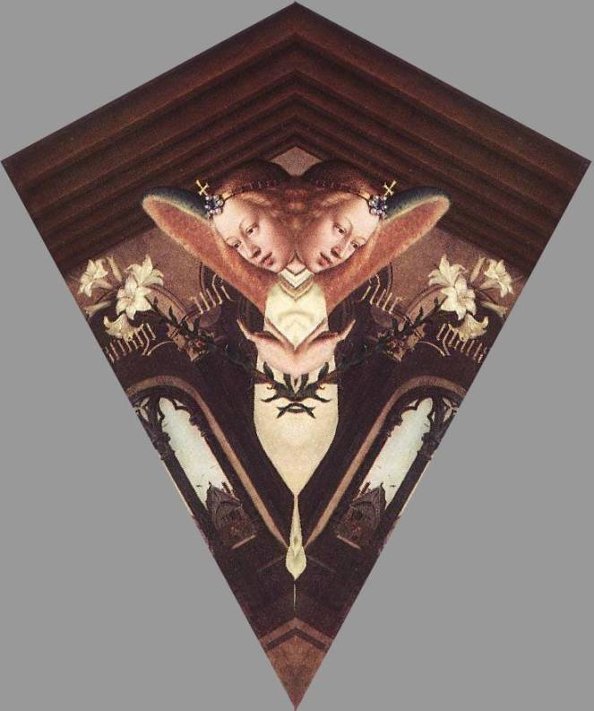 Man kann die Aussagen dazu auch anders interpretieren. Iris ist die Regenbogenhaut im Auge (schau genauer hin). Blau symbolisch weist auf etwas weibliches hin. Beide Blumen stehen auf selber Höhe ausserhalb dieses Kuppelbaues. Lilie sagte ich schon, weisst auf etwas königliches hin. Kann damit bedeuten, das es sich um etwas königliches handelt, für einen zukünftige/n König/in (Blüten geschlossen)