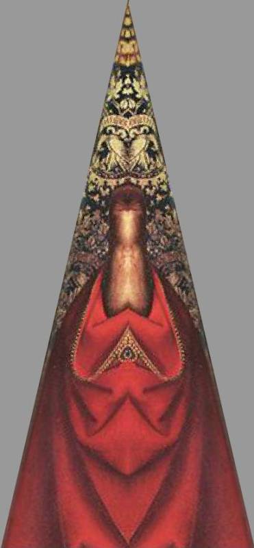 Also, die Ur-Matrize für die Suche nach Eingängen ist das Gemälde "Madonna in der Kirche" von Van Eyck. Zumindest habe ich das so verstanden. Das Gemälde zeigt keinen real existierenden gotischen Kirchenbau. E szeigt, wie man verborgene Eingänge in die unterirdischen Gewölbe und Schatzkammern findet.