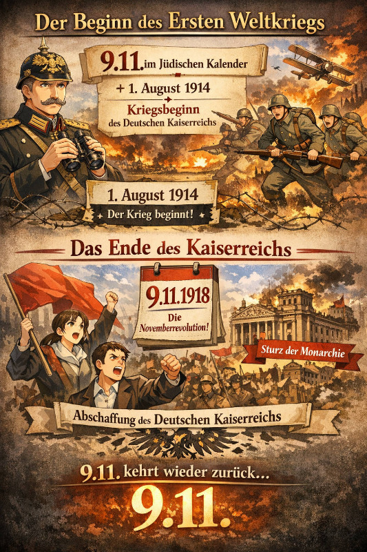 Das Deutsche Kaiserreich trat am 9.11. des Jüdischen Kalenders (= 1.8.1914 nach Gregorianischem Kalender) in den Krieg ein, der der Erste Weltkrieg wurde.