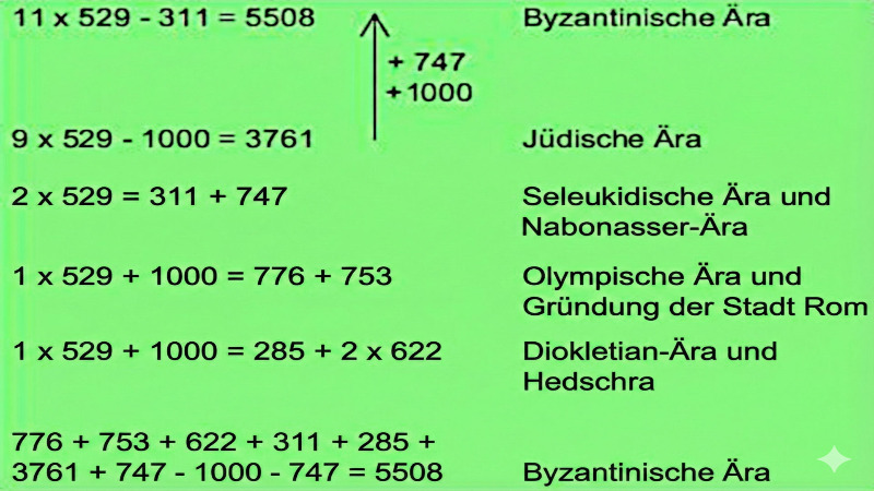 2) Konstruktion der antiken Zeitrechnungen um die Schlüsselzahl 529.