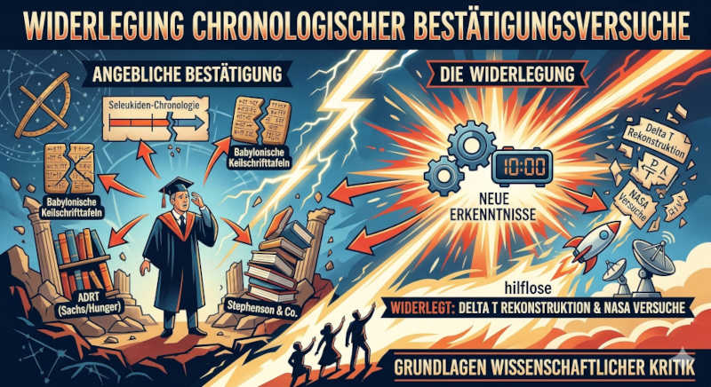 Die angebliche Bestätigung der Seleukiden-Chronologie der offiziellen Geschichte in den "Astronomical Diaries and Related Texts from Babylonia" (ADRT) von Abraham J. Sachs und Hermann Hunger und ähnlichen Machwerken ist damit widerlegt, zusammen mit der angeblichen Rekonstruktion von Delta T von Stephenson & Co., inkl. der hilflosen NASA-Versuche in dieser Richtung.