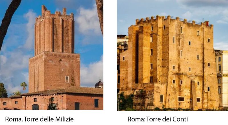 Dabei hob ich die beiden mittelalterlichen Türme hinter den Kaiserforen in Rom hervor, nämlich die Torre delle Milizie oder
